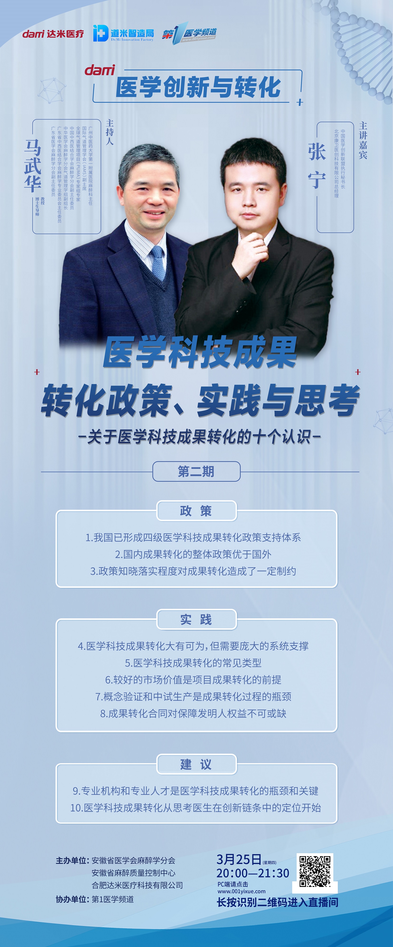 第二期:医学科技成果转化政策、实践与思考-关于医学科技成果转化的十个认识——张宁主讲、马武华主持