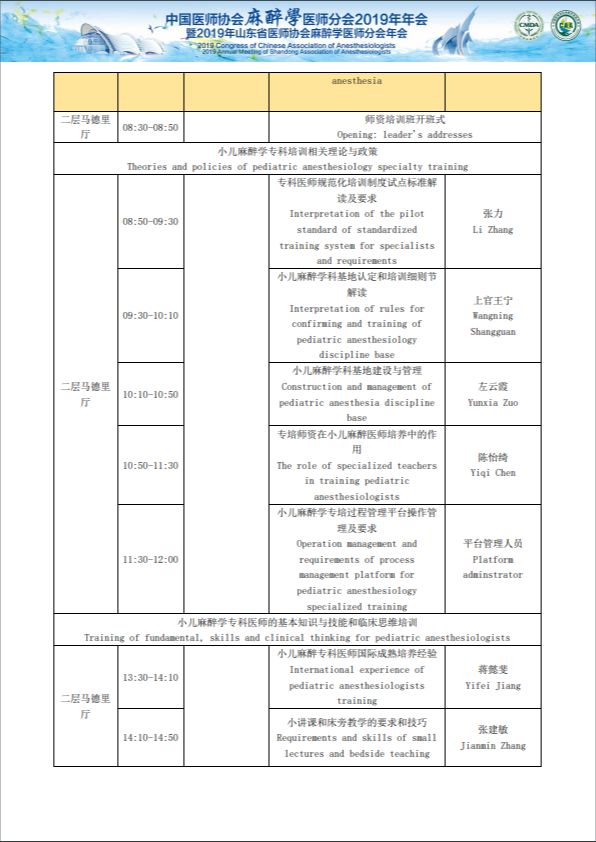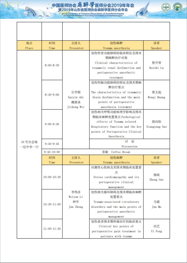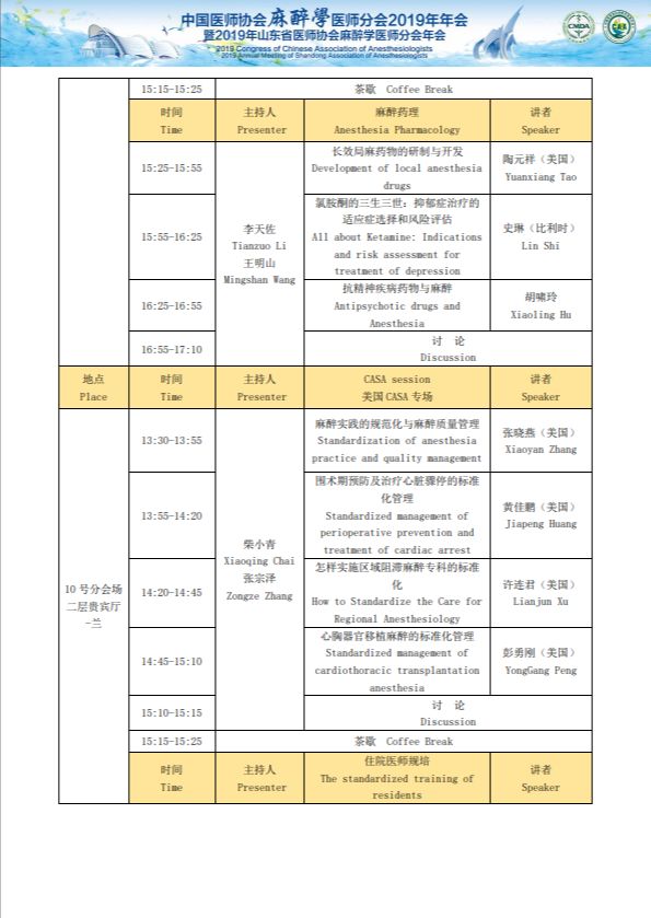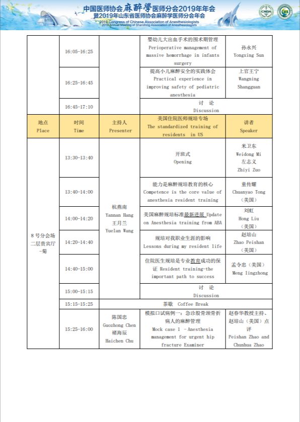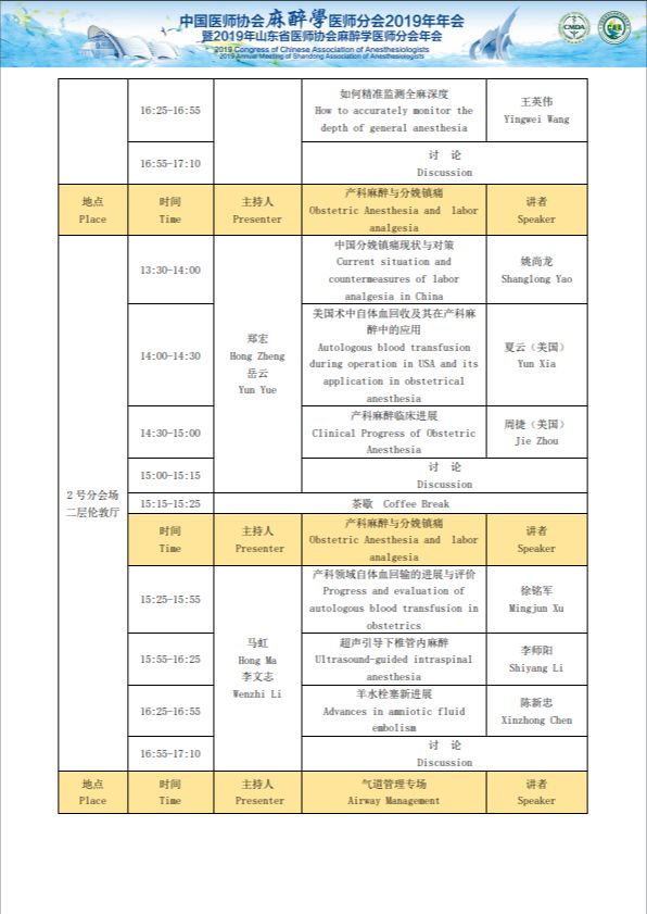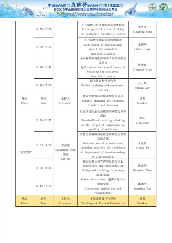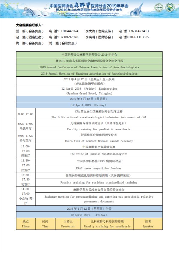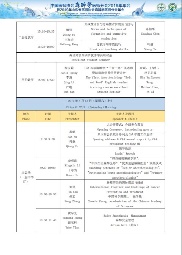 中国医师协会麻醉医师分会2019年年会暨2019年山东省医师协会麻醉医师分会年会