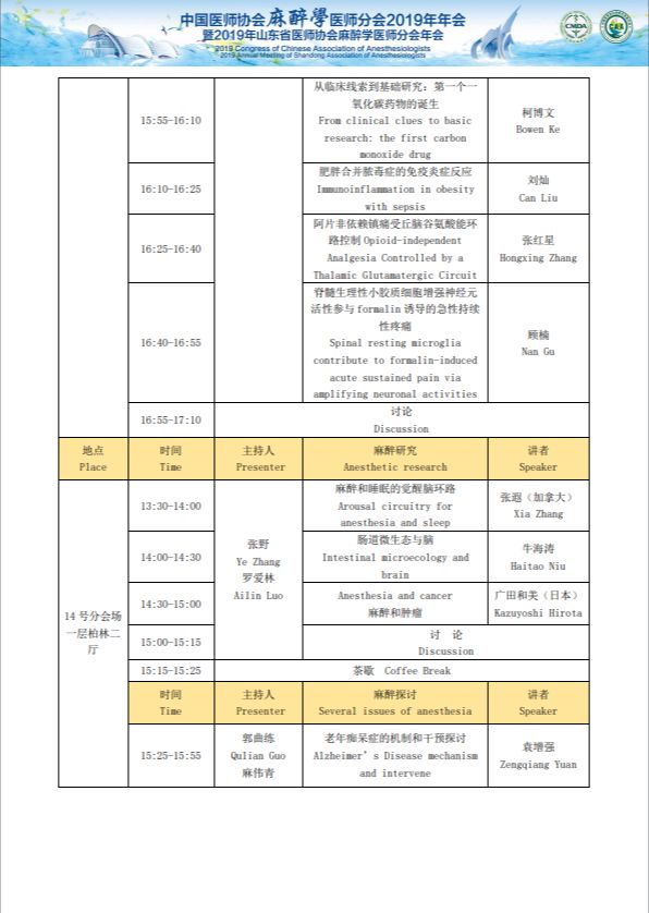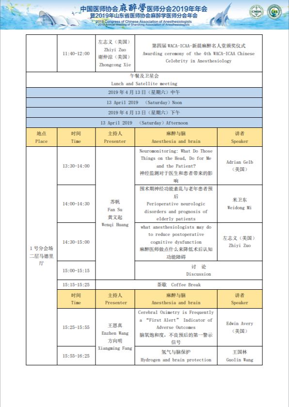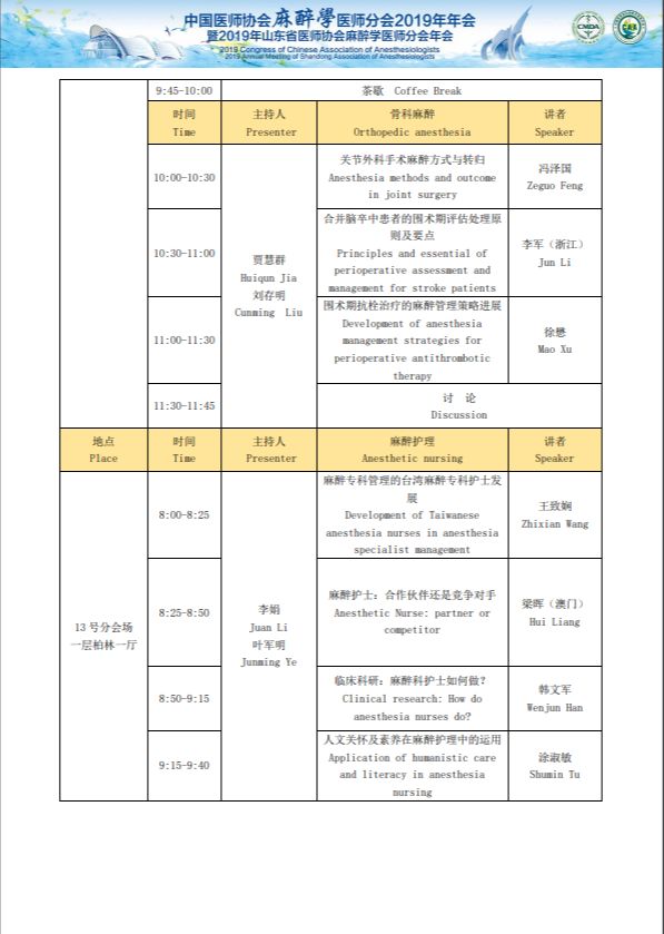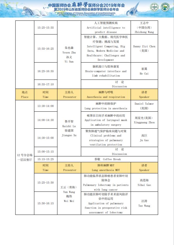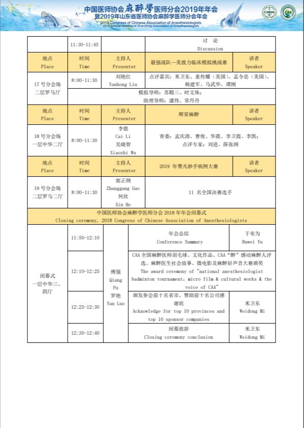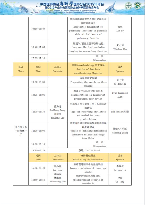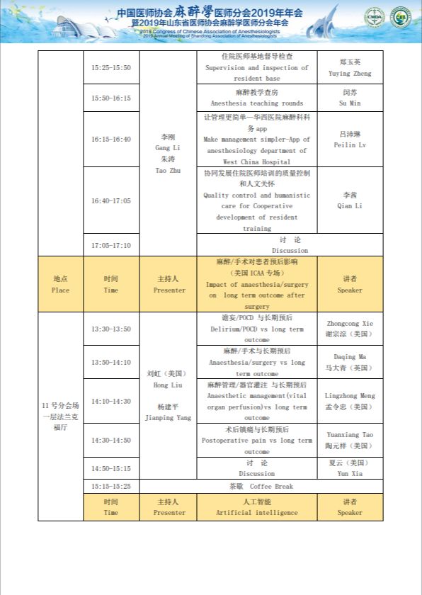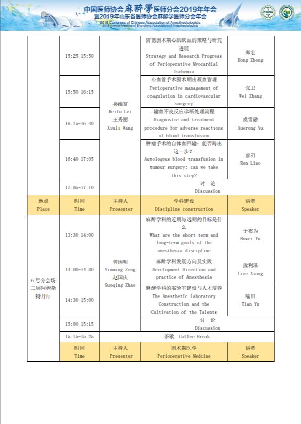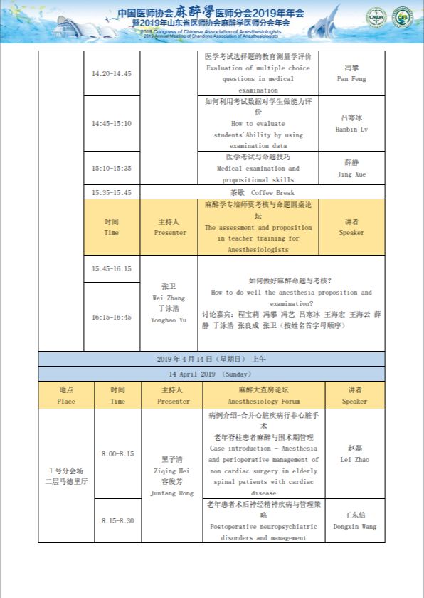 中国医师协会麻醉医师分会2019年年会暨2019年山东省医师协会麻醉医师分会年会