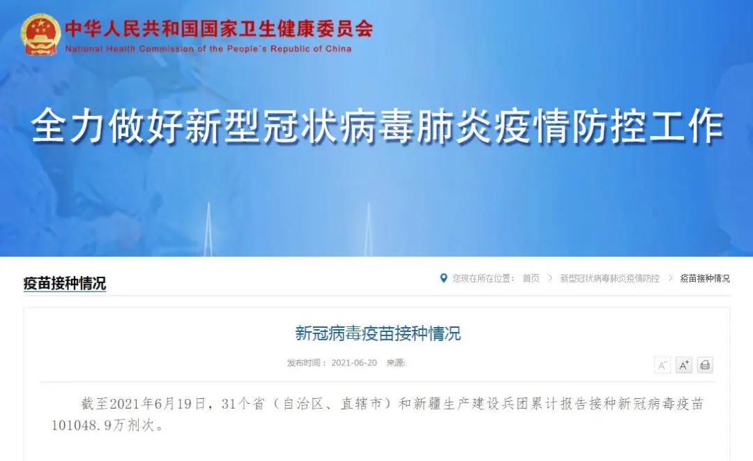 国家卫健委:新冠病毒疫苗接种破10亿剂次